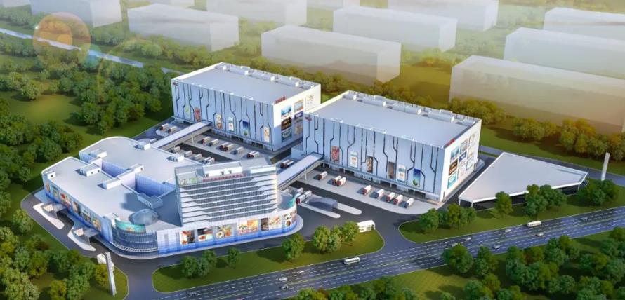 项目总用地面积约93470.8㎡,新建建筑总占地面积为42783.6㎡,总建筑面积261047.73㎡。项目用地共分为四大功能区——产品配送综合展示区、综合办公区、集散周转区、冷链物流区。综合产品展示区及综合办公区位于园区东部,集中设置在产品配送综合展示中心。集散周转区位于园区中部,衔接产品配送综合展示区及冷链物流区,打造园区内部快捷、高效的物流周转体系。冷链物流区位于园区西侧,共设置两栋高层冷库,为整个园区提供冷链仓储服务。