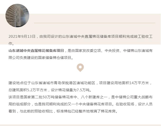 储备温暖 蓄能未来 | 山东诸城中央直属棉花储备库项目顺利完成竣工验收