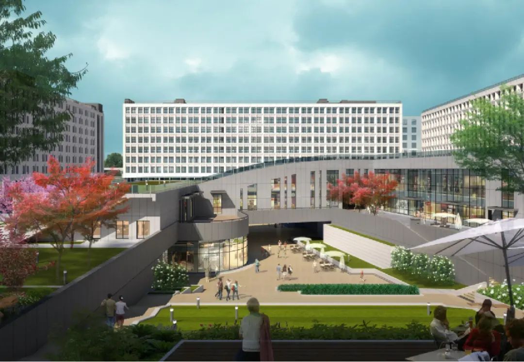 该项目设计融入了北京传统“院落”模式,各楼分而不离,布局合理、分区明确。从地面景观、下沉广场和空中绿地三个层次,打造健康生态的景观系统。