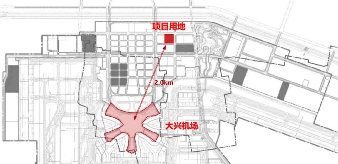 北京大兴国际机场生活服务设施二期工程位于北京大兴国际机场规划场地内,航站楼东北侧。场地北侧规划为新机场航兴路,南侧为新机场居泰路,西侧为主干三路与生活服务设施一期,东侧为新机场航泰路。