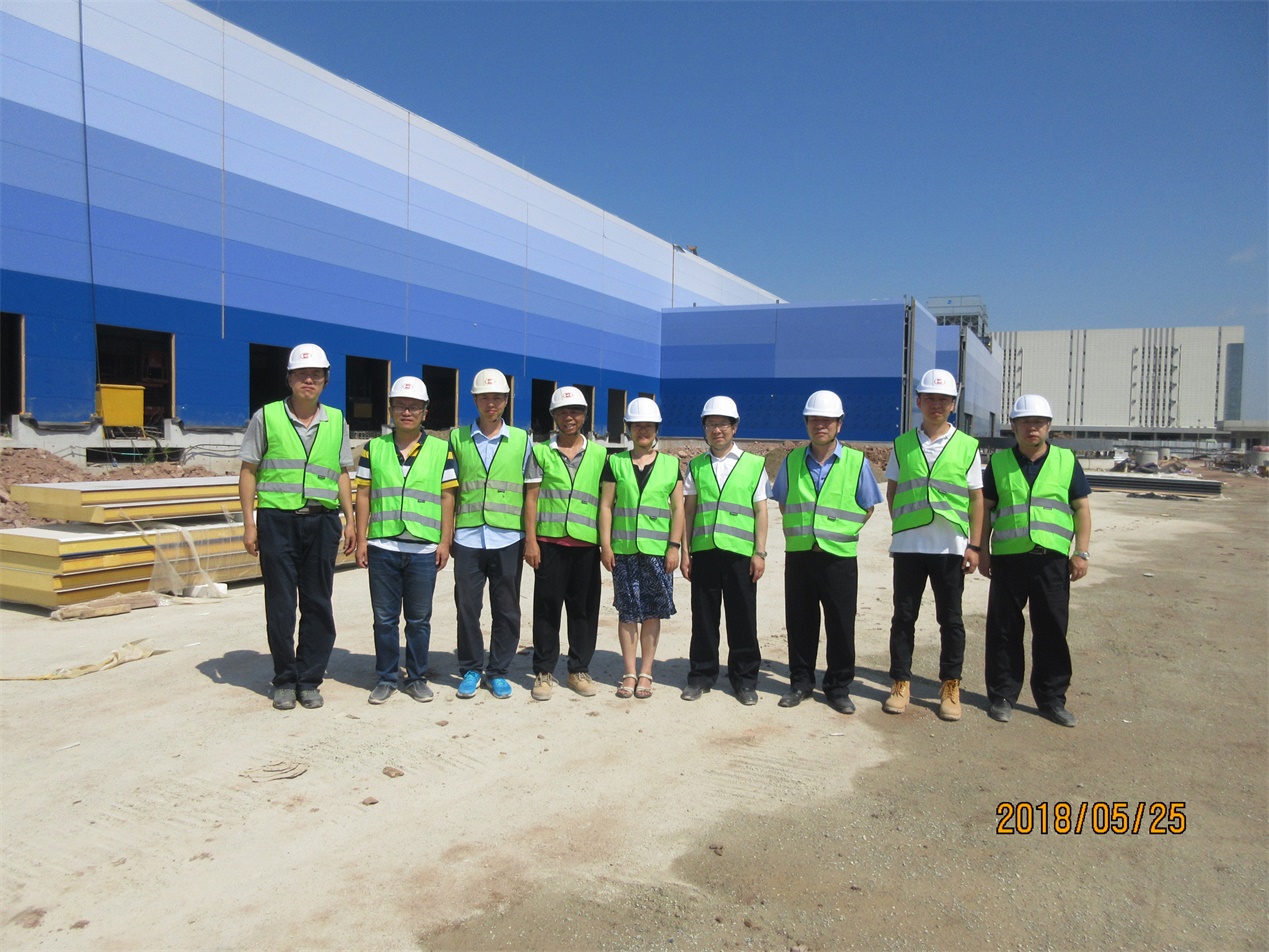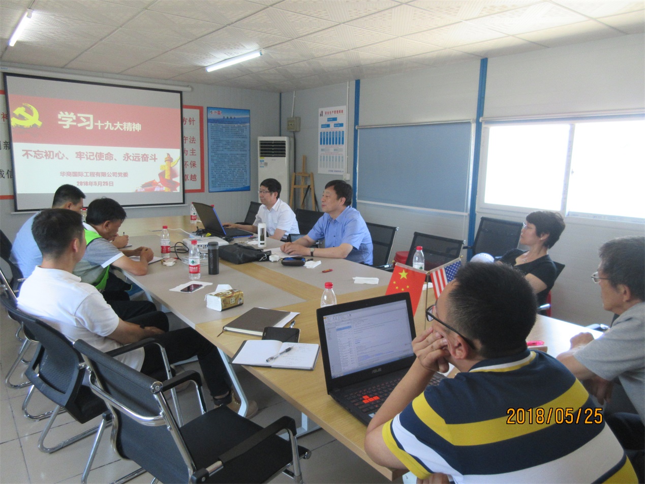 2018年5月25日,华商国际工程有限公司副总经理许静东、党委副书记何万山来到我公司承接的总承包工程—虎门港联想增益供应链华南总部基地项目(冷链三区)现场进行调研,并对在现场从事项目管理的我公司员工宣讲了党的十九大精神,同时代表公司党委对项目现场员工进行了慰问。