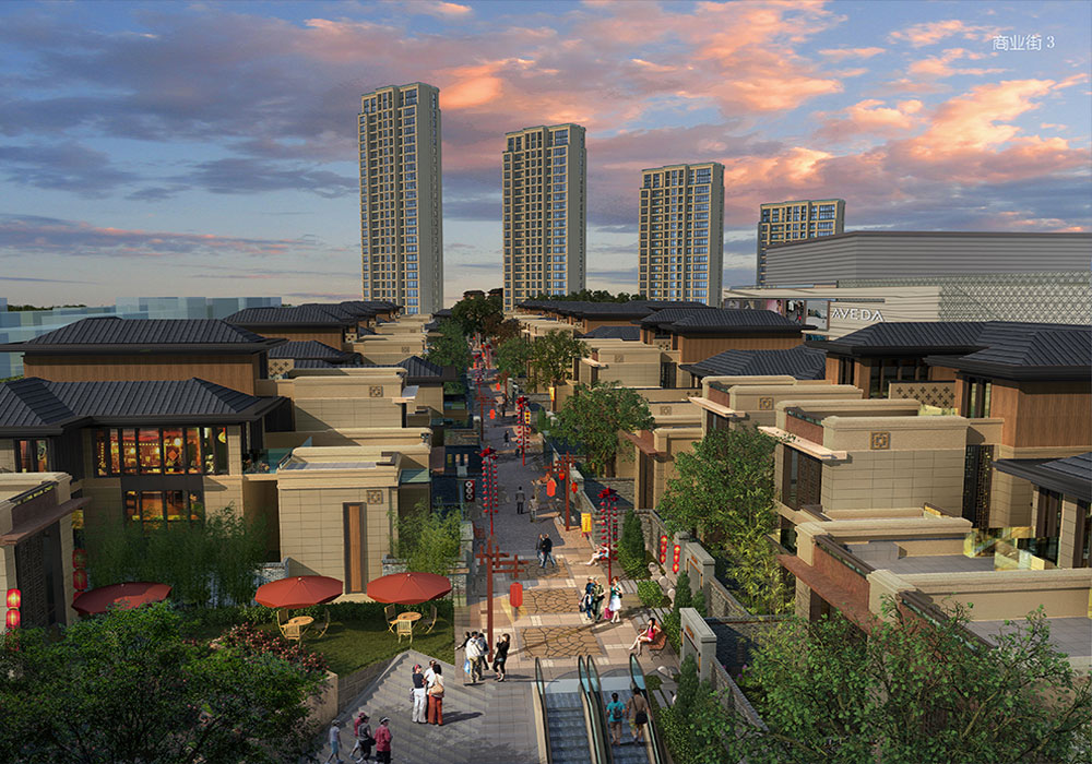 用地规模:12.5公顷 建筑面积:27万平方米 功能内容:商业Mall,商业街区,黄州书院主题居住区 项目简介:协调经济、环境与社会效益三者之间的关系,打造既适应土地开发建设实际又体现个性化和标志性的高档生活广场;建筑形态上将当地的建筑文化融入传统、现代、简约三类中式建筑符号,丰富项目的建筑内涵。