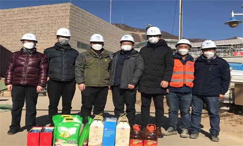 春节期间,位于延庆赛区的冬奥会项目组在冰雪事业部部长王鹏、华商亿源公司总经理王锋的带领下一直坚守在一线。项目团队在党员同志的示范引领带动下,放弃春节休息,克服困难,甘于奉献,有力的推动工程建设,用他们的实际行动践行党旗飘扬在一线,党徽闪耀在岗位。 2月3日,节后部分复工的第一天,公司党委书记、总经理李晓虎、党委副书记兼纪委书记何万山一行再次专程来到项目现场,指导现场防疫并看望慰问奋战在一线的同志们,并给项目部带去防疫物资及生活用品。