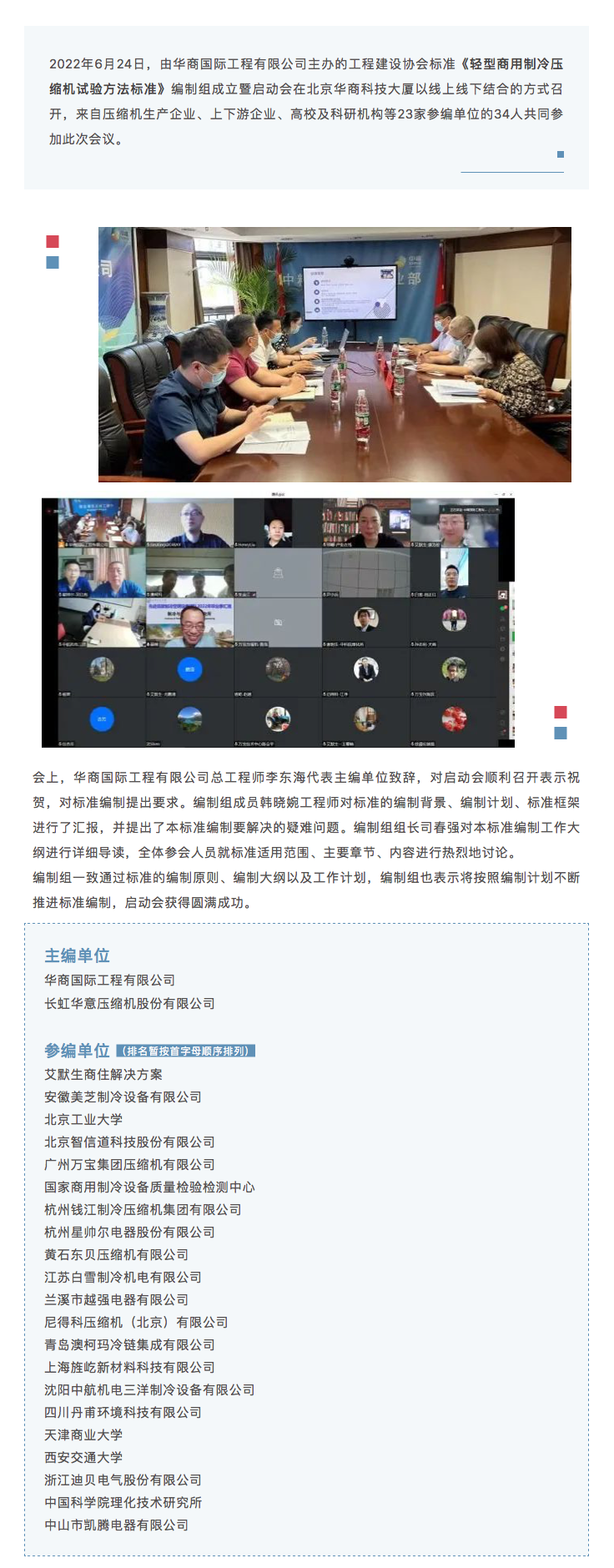 工程建设协会标准《轻型商用制冷压缩机试验方法标准》编制组成立暨启动会