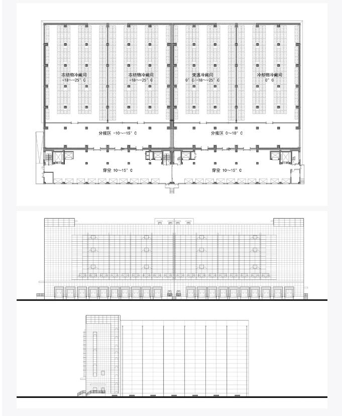 1、冷库具有10~15℃、0~10℃、0℃、-10~-15℃、-18~-25℃、-18~-25℃/0℃的复杂多温区,制冷系统采用节约、集约化设计。