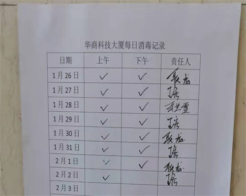 每日,从晨光熹微到万家灯火,我们的办公大楼——华商科技大厦依然凝神伫立,看似平静如常。而在大楼里,既要严格落实好疫情防控措施,全力确保大楼安全,又要保障大楼正常运营,每个默默付出的华商物业公司领导、职工,都在自己的岗位上与时间赛跑、与疫情较量。物业公司副总经理王宏、综合办公室主任耿龙同志就是确保办公大楼安全的守护者。