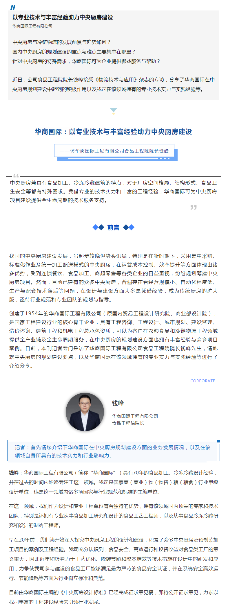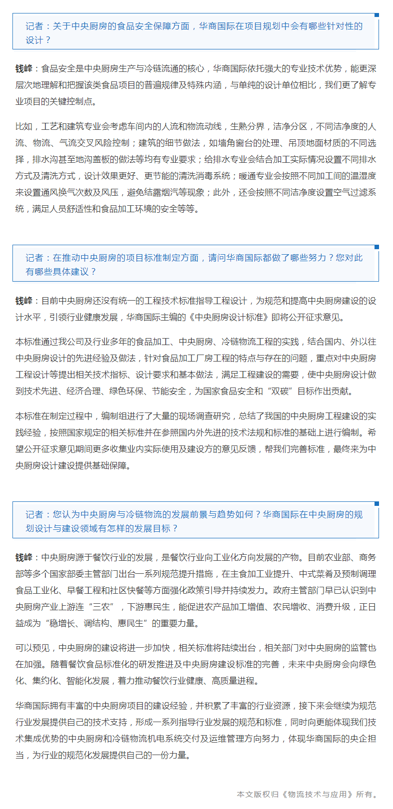 专访 | 以专业技术与丰富经验助力中央厨房建设
